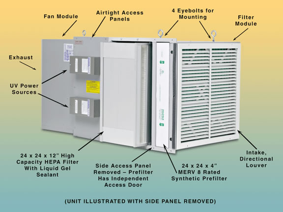 When not operating at its optimum speed setting, the motor can be run at a fractional HP setting or in Constant Fan (CF) mode. This reduces energy consumption while keeping air constantly moving, filtered and redistributed throughout a facility. For less than 50* cents a day the CF mode filters airborne particulate, odors, and fumes that cause a stale, musty and stagnant air build-up during the off-hours. The low energy, almost silent CF mode can be manually activated by user or set to function automatically during regular working hours when combined with our optional (TSCMM) Timer Control hardware.